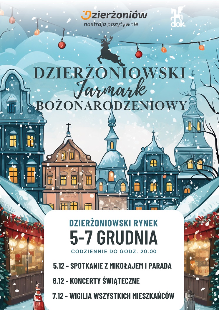 Zapach piernika, grzaniec, rozświetlona żywa choinka, dźwięk kolęd i radosny gwar – tak będzie wyglądał Dzierżoniów w pierwszy weekend grudnia. Serdecznie zapraszamy na Jarmark Bożonarodzeniowy, który zawita na nasz rynek. Czeka na Was moc atrakcji: wizyta Świętego Mikołaja, barwna parada, wspólne kolędowanie, koncerty świąteczne i wyjątkowa miejska wigilia.
